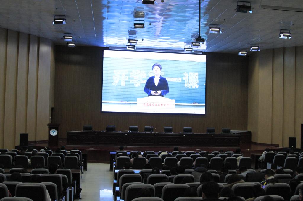 会后,全体与会师生一同观看了内蒙古自治区教育厅组织开展的《铸牢中华民族共同体意识》开学第一课视频直播,视频直播内蒙古师范大学李春晖教授主讲,李教授首先提出了“爱国三问”,通过“爱国三问”进入了今天的课程,李教授提出了当代中国青年既是实现第一个百年奋斗目标的经历者、见证者,更是实现第二个百年奋斗目标、建设社会主义现代化强国的生力军。希望广大团员青年刻苦学习知识,坚定理想信念,磨练坚强意志,锻炼强健体魄,为实现中华民族伟大复兴的中国梦时刻准备着奉献青春力量。