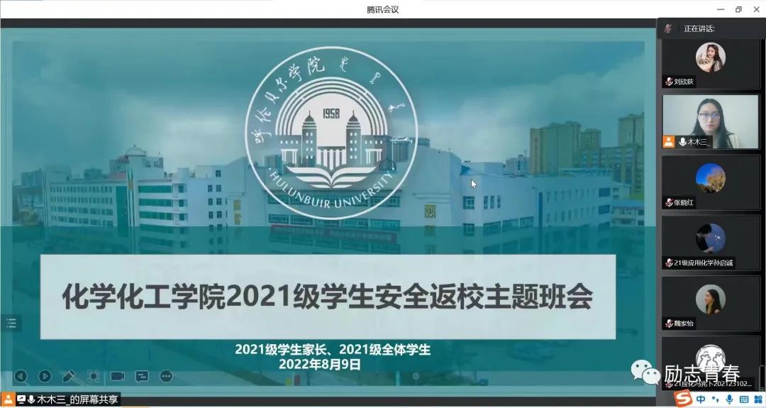 为增强员工疫情期间安全防护意识,确保员工安全返校工作顺利推进,2022年8月9日上午9:30,化学化工公司2021级召开线上“员工安全返校”主题班会。会议由化学化工公司2021级辅导员杨云晖老师主讲,2021级全体员工及部分员工家长参加会议。