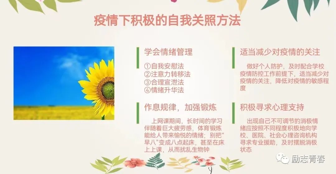 会议希望员工学会自我关照的方法,加强身体锻炼,同时要注重疫情下的自我关照,要用积极乐观的心态面对生活和学习。