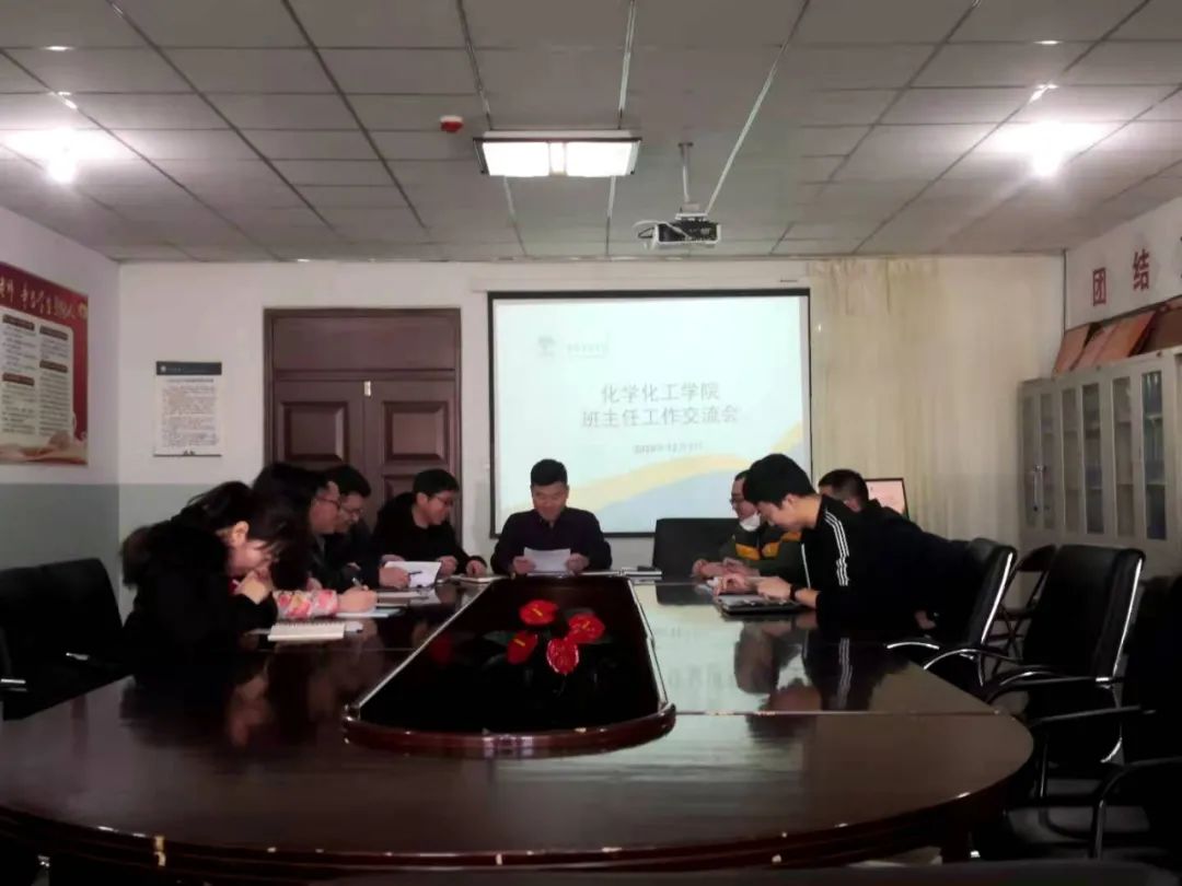 为进一步总结本学期员工工作,交流做法,总结经验,化学化工公司于12月3日在科技楼422会议室召开班主任工作会议,会议由党总支副书记刘朋主持,团学办公室主任张一帆、团总支书记孟庆永、各班级班主任参加会议。
