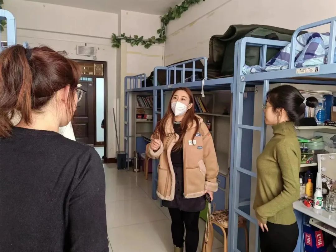 在检查的过程中,各位领导与辅导员与同学们坐下来亲切地进行了交谈,面对面了解了他们的思想、学习、生活等情况,关心了同学们的身体状况,给同学们在生活中、学习中出现的困惑予以解答和帮助,并告诉他们要经常开窗通风,预防流行性疾病。本次检查重点针对宿舍卫生、大功率用电器及寝室通风等情况进行了细致的检查,检查效果良好,较多数宿舍整体干净整洁、床铺上物品及其他生活用品摆放整齐,并且无大功率用违章电器使用。
